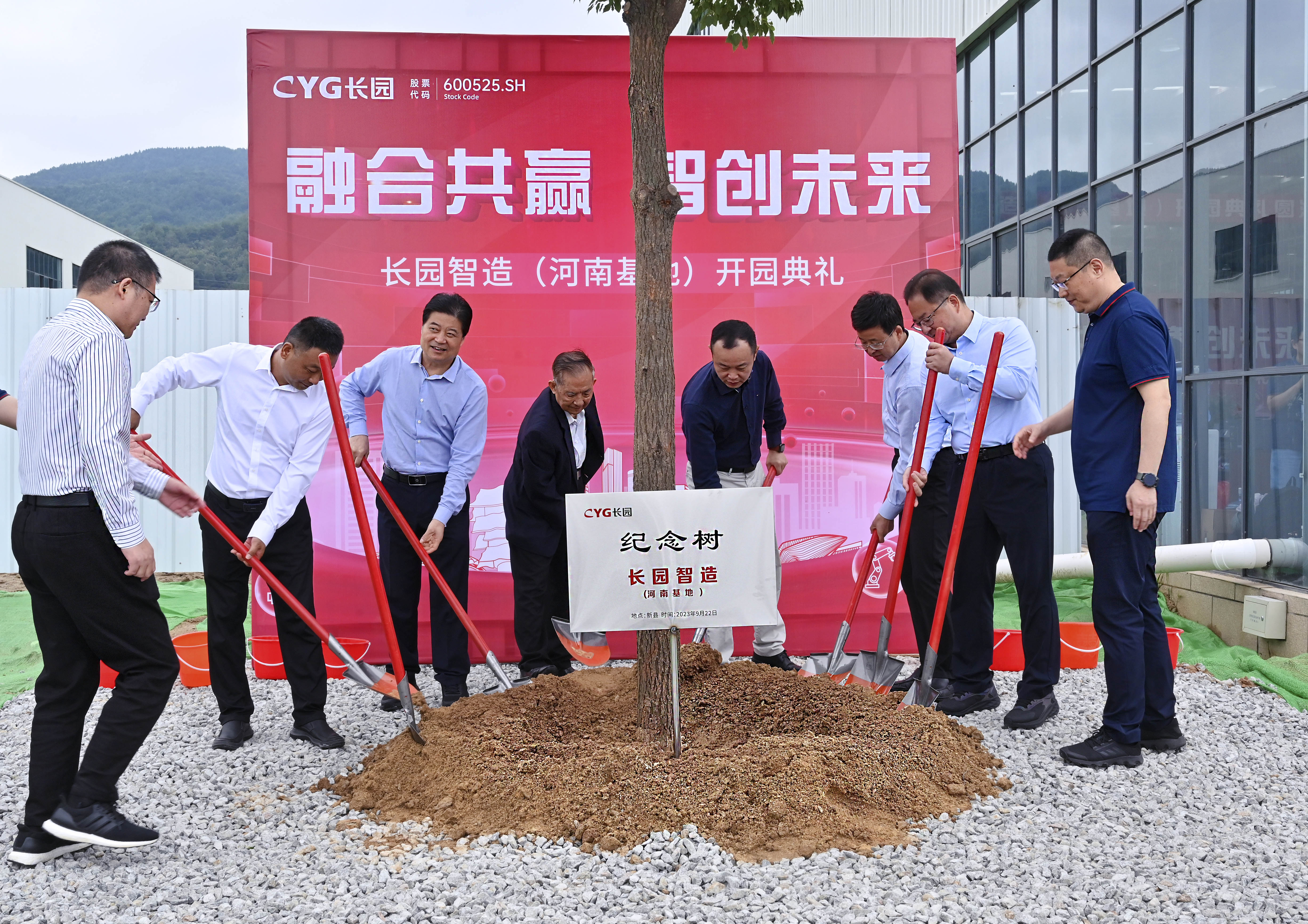 参与剪彩仪式的10位嘉宾领导在一声声倒数及礼炮声中同执金剪,并在基地共同种下一棵香樟树以作纪念。香樟树枝繁叶茂,四季常青,寓意着yabo鸭脖智造(河南基地)将像香樟树一样生命力顽强旺盛、扎根新县繁荣生长。